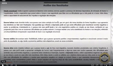A correção é totalmente automatizada pela plataforma. O sistema calcula imediatamente os coeficientes e percentis, gerando um relatório auxiliar para o psicólogo.