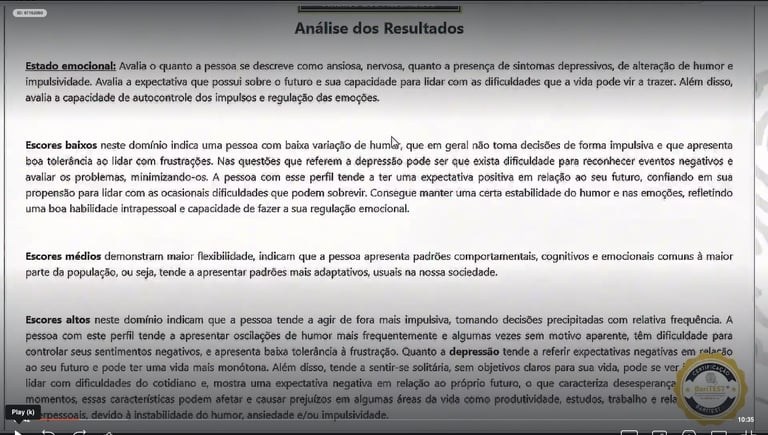 Ele ajuda você a compreender o significado psicológico dos padrões que aparecem no laudo.